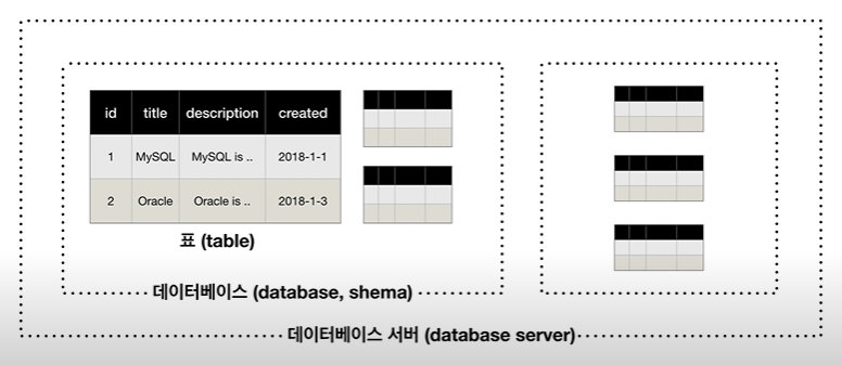 스키마들을 정리하여 저장하는 곳 : 데이터베이스 서버 (database server)