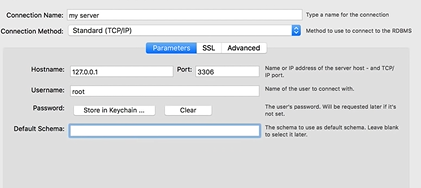 mysql 서버에 mysql 워크벤치라는 클라이언트가 접속하는 방법은 일종의 북마크 같은 방식으로 한다. '동그라기 안에 있는 더하기 버튼'을 누르면 'Setup New Connection' 화면이 뜬다.