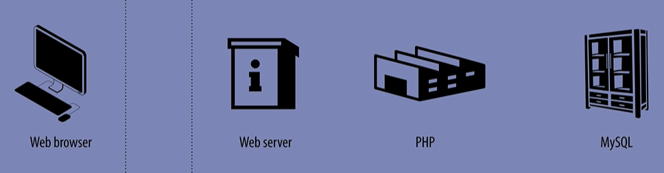 서버에는 웹서버, php, mysql의 3가지의 소프트웨어가 설치되어 있다.