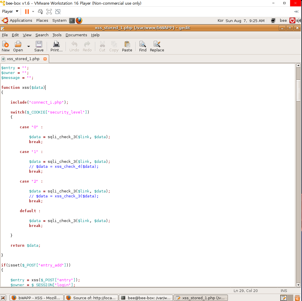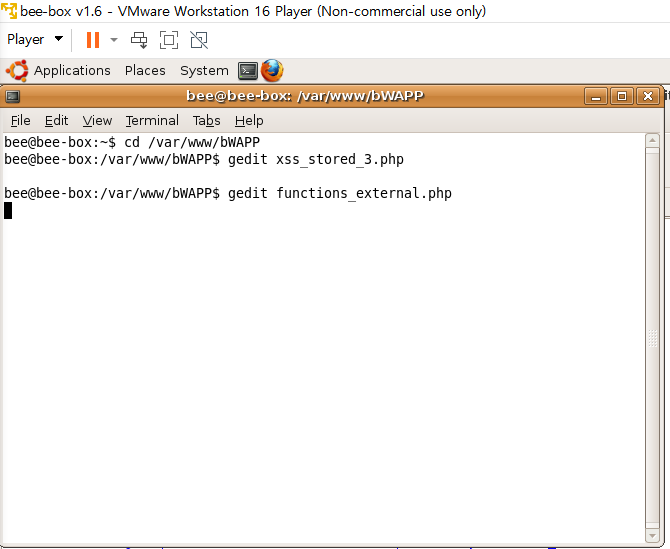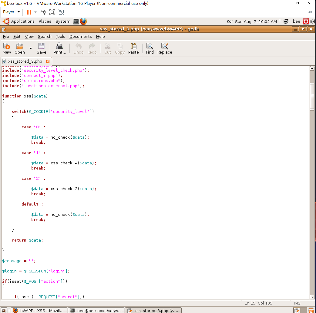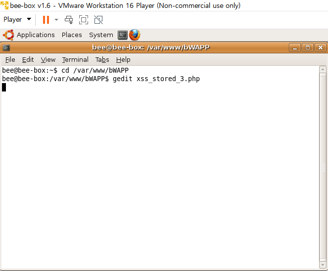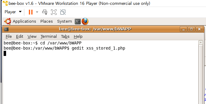 터미널에서 gedit xss_stored_3.php를 입력해서 파일을 열어본다.