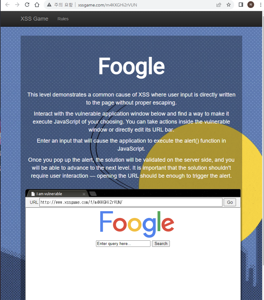 XSS game 01 : alert 함수를 사용해서 경고창이 뜨게 만들기