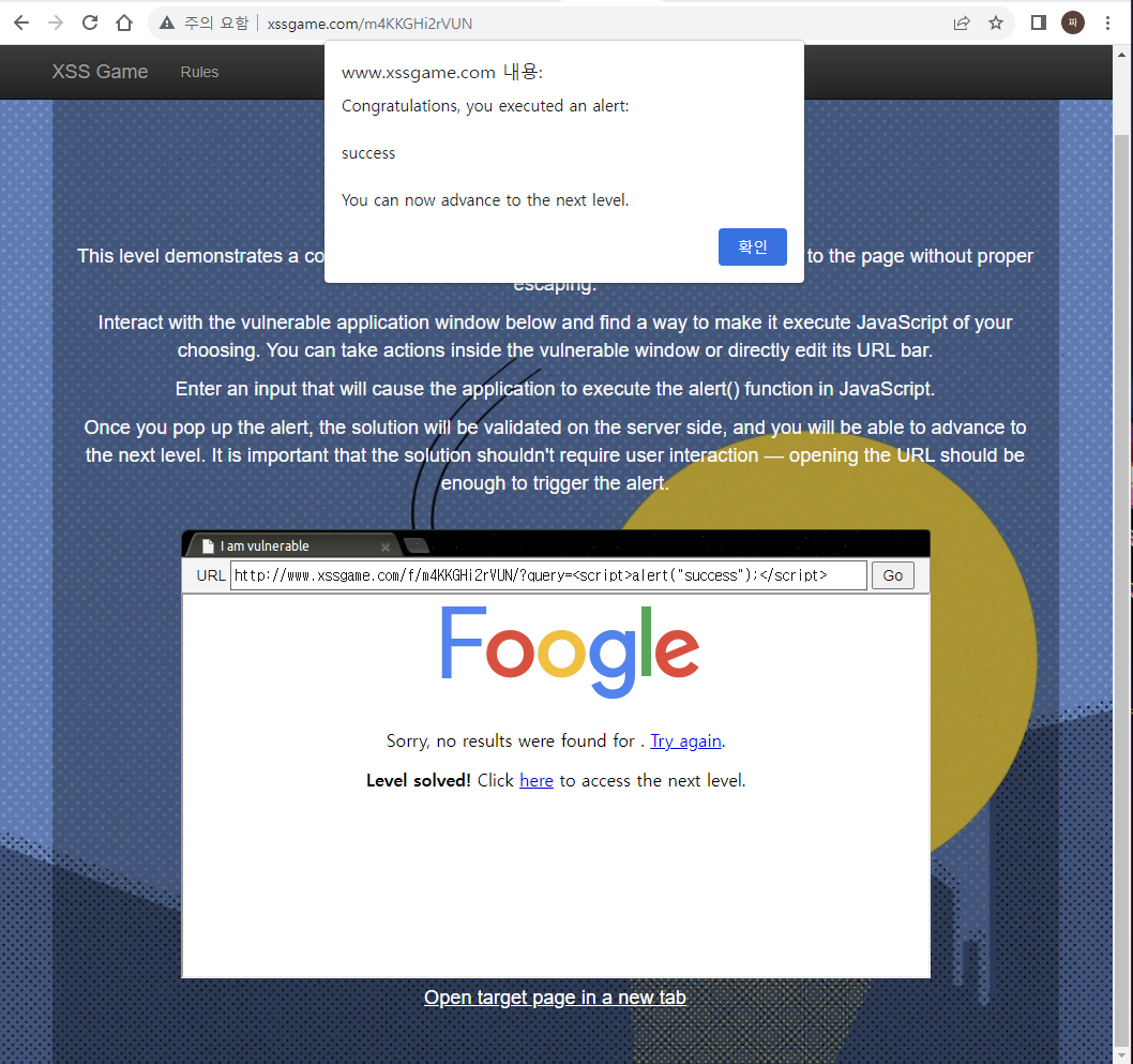 ');alert(' 를 입력하면 아래와 같이 성공하는 것을 확인할 수 있다.