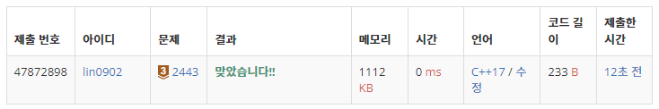 | 2455: 지능형 기차 (0) | 2022.08.25 |