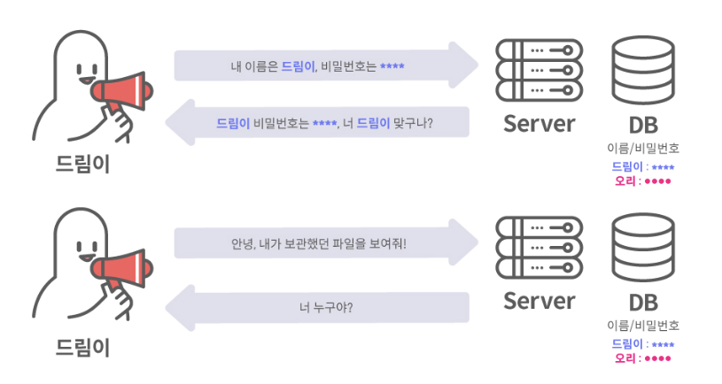 http는 하나의 request와 response의 쌍이 독립적으로 구성되어 통신하는 connectionless, stateless 프로토콜이다.