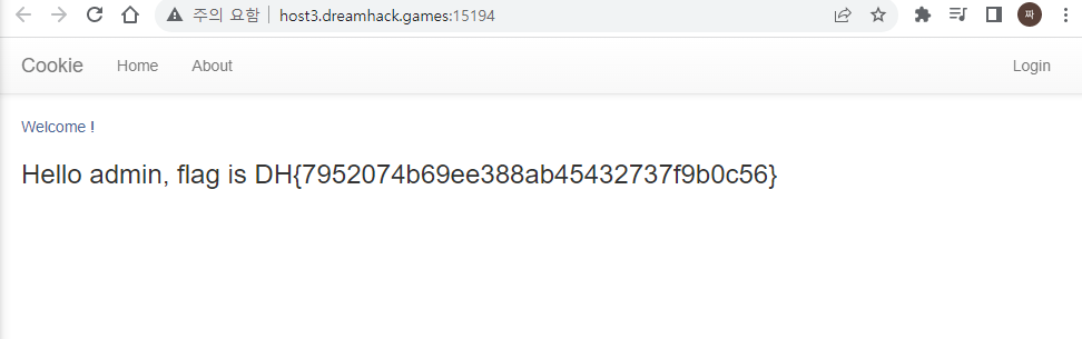 새로고침하면 아래와 같이 flag가 뜨는 것을 확인할 수 있다.