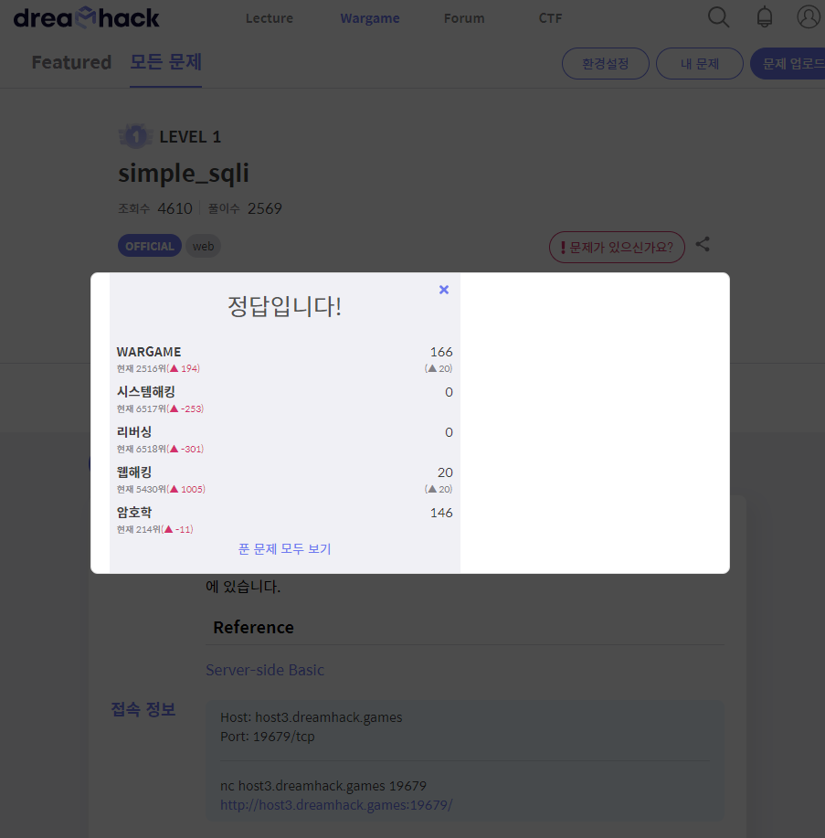 접속 정보에 있는 http://host3.dreamhack.games:20151/ 링크로 들어간다.