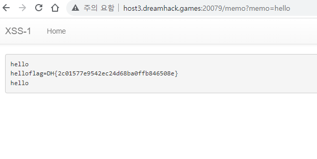 접속 정보에 있는 http://host3.dreamhack.games:20079/ 링크로 이동한다.