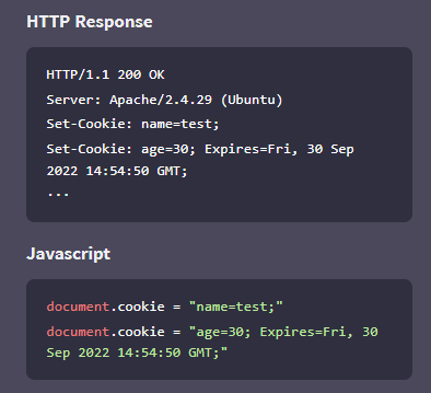 stateless 속성은 네트워크가 연결을 끝맺을 때 상태를 유지하지 않는 것을 의미한다. http 요청마다 새로운 커넥션을 열기 때문에 사용자 인증을 계속해서 해야한다는 단점이 있다. 이러한 단점을 개선하기 위해 상태를 유지하기 위한 Cookie가 탄생했다. 웹 브라우저는 http response의 Set-Cookie Header나 Javascript document.cookie를 통해 데이터를 쿠키에 저장한다.