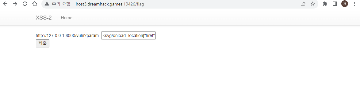 여기서 vuln(xss) page를 들어가면 xss필터링이 걸어져 있는 것을 확인할 수 있다.