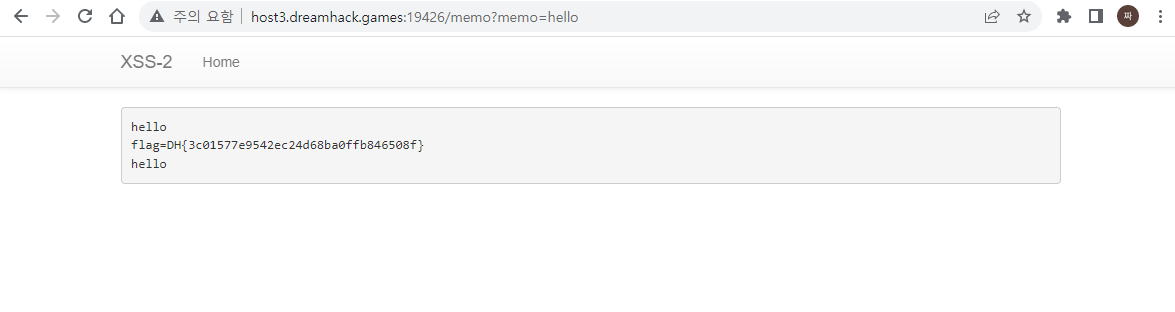 그리고 memo를 들어가면 위와 같이 flag 값이 나온 것을 확인할 수 있다.