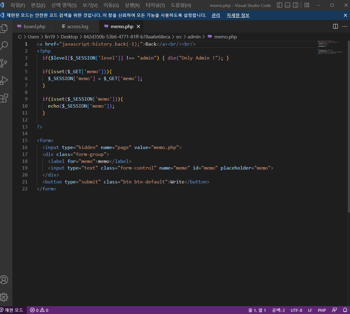 확인해보면 memo 파라미터에 입력한 값을 SESSION[memo]에 저장하는 것을 확인할 수 있다.