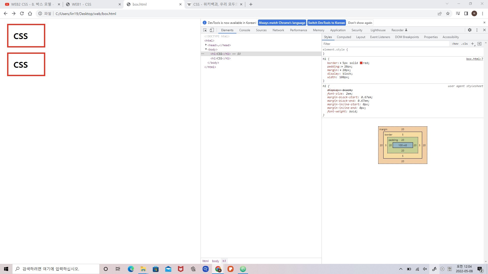 WEB2 CSS - 1. 수업 소개 ~ 9. 박스 모델 써먹기