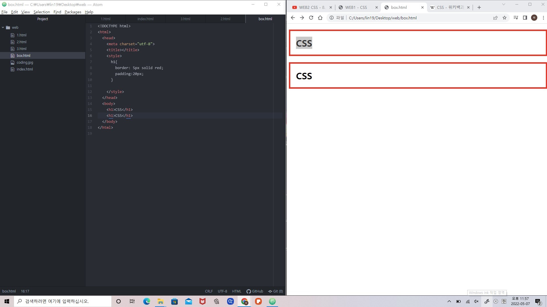 1.테두리와 테두리 사이의 빈 공간을 조절하는 CSS :
