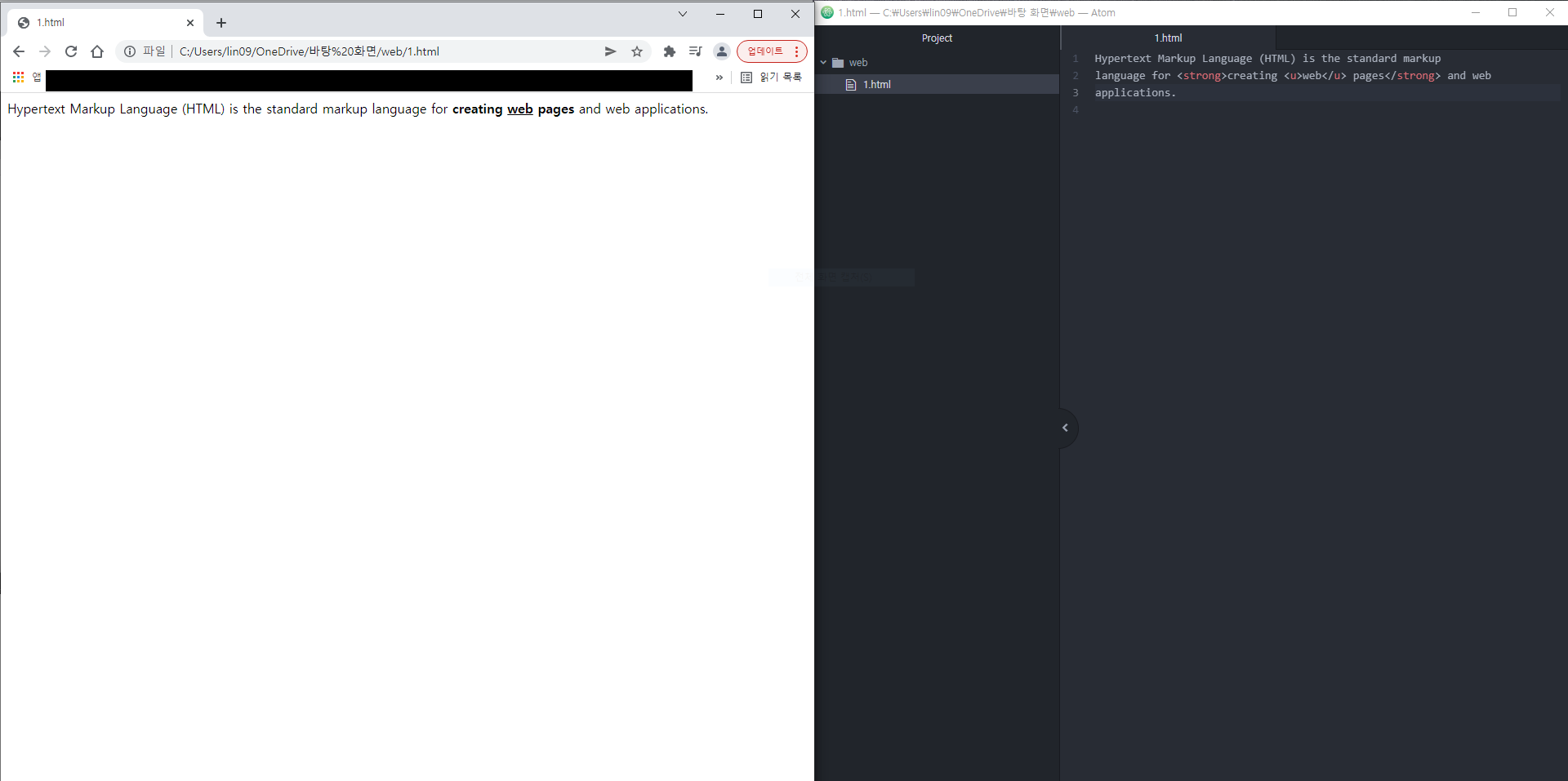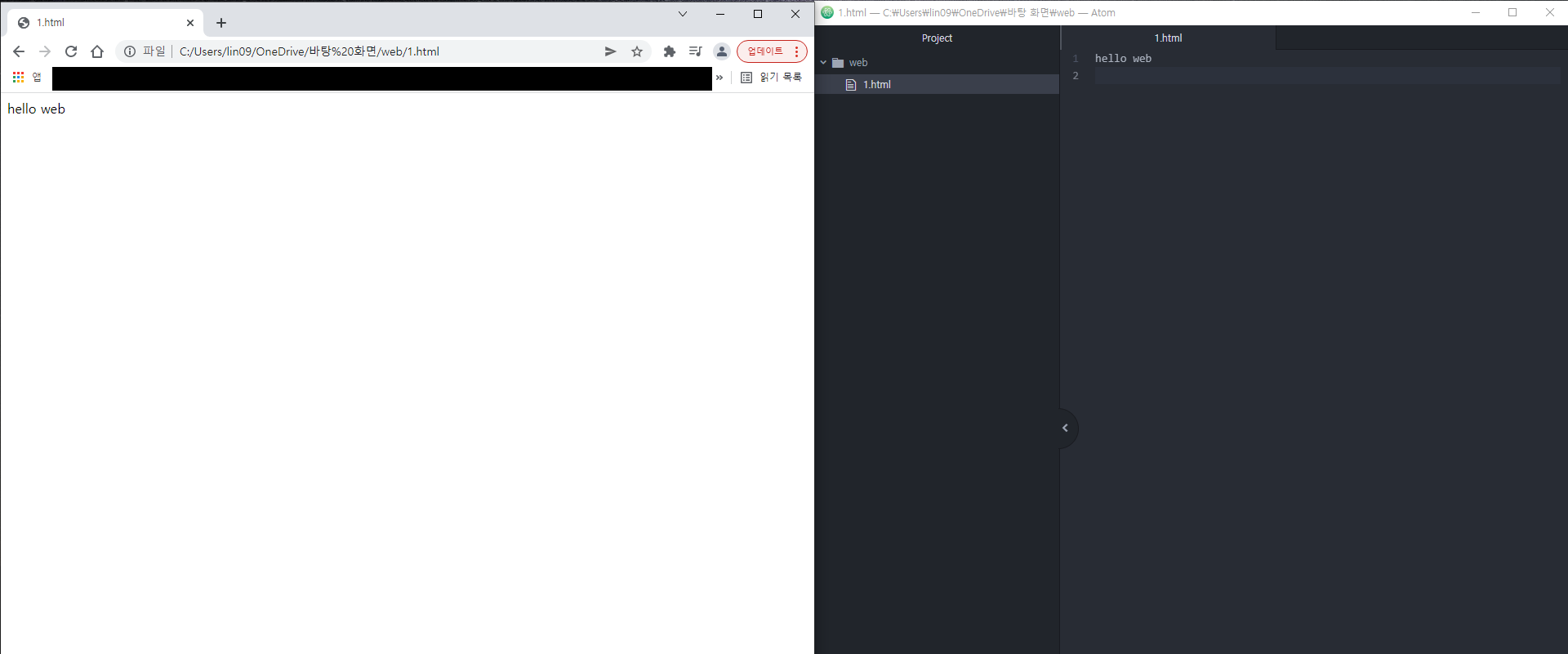 *웹 브라우저와 같은 컴퓨터에 있는 파일인 1.html을 읽는 방법 => 파일 열기 기능 사용(Ctrl+O)