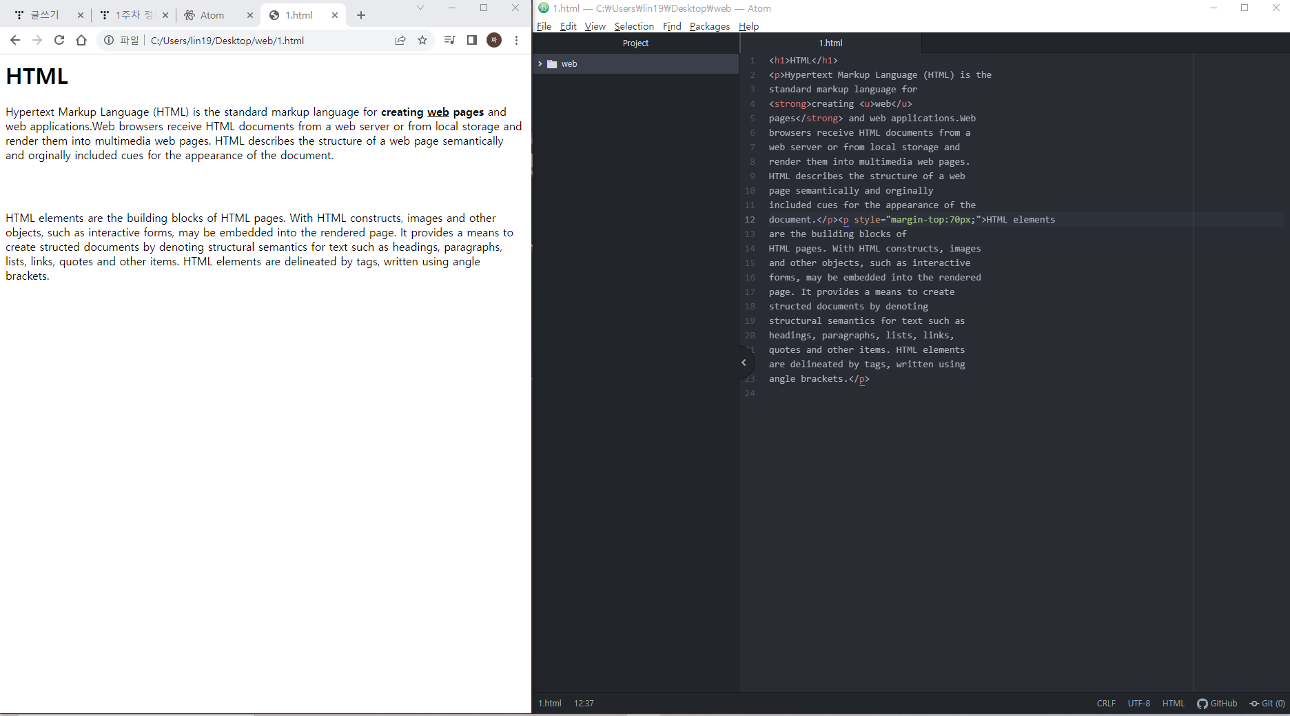 *웹 브라우저와 같은 컴퓨터에 있는 파일인 1.html을 읽는 방법 => 파일 열기 기능 사용(Ctrl+O)
