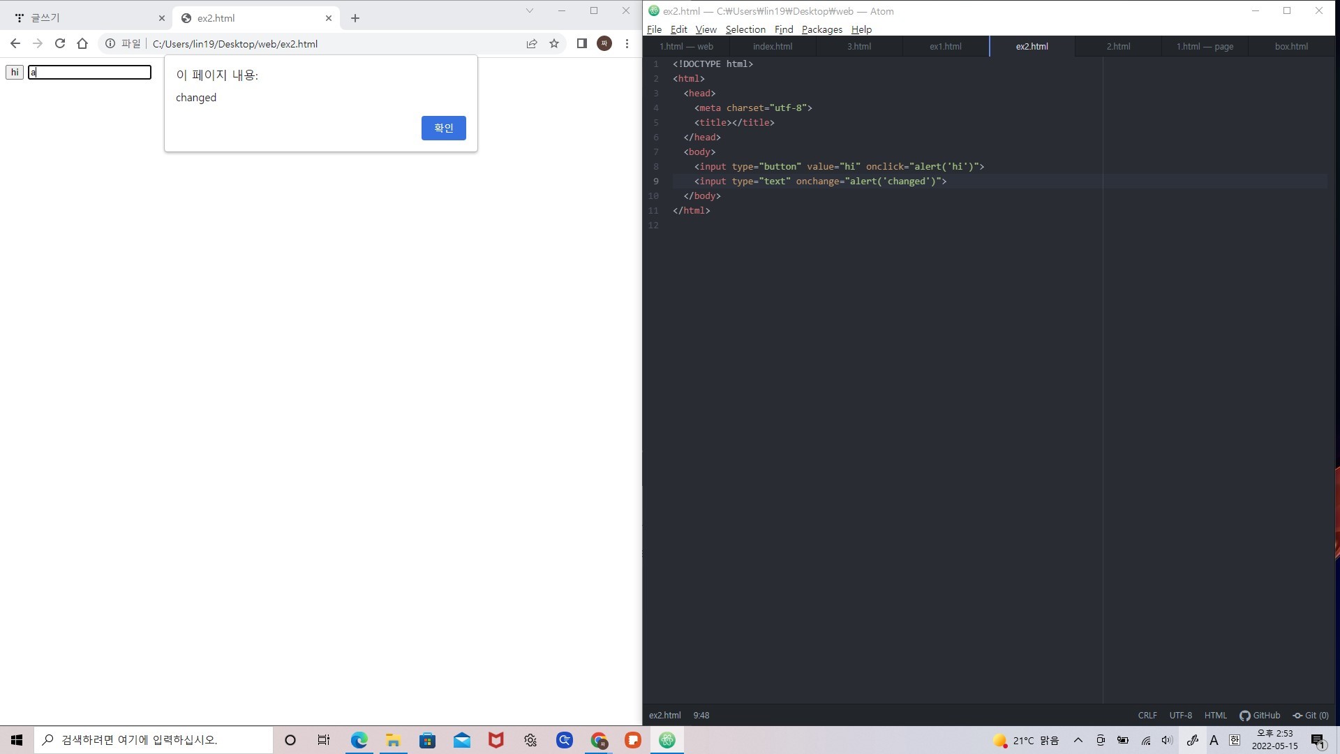 - 내용이 변했을 때 체크하는 속성 : onchange="alert(' ')"