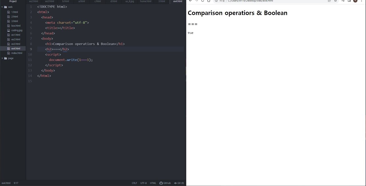 - 만약 같다면 true가, 다르다면 false가 출력됨
