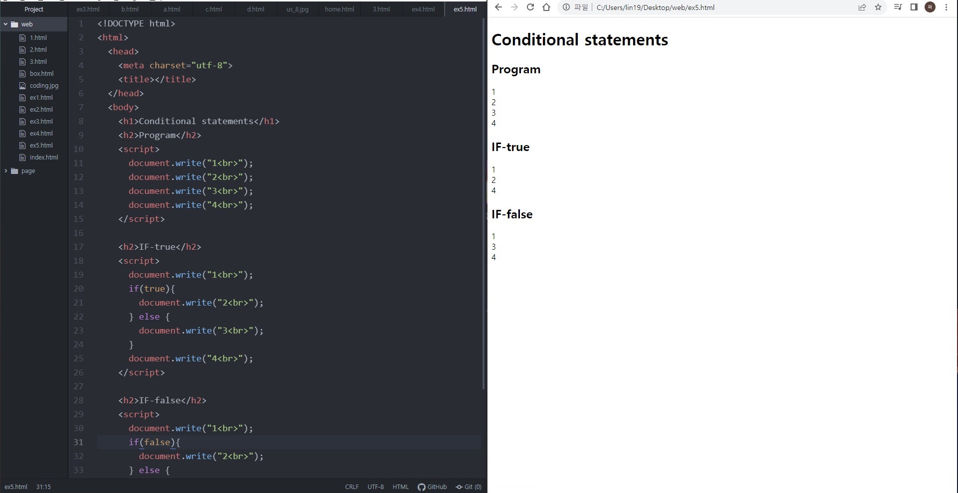 : 불리언 값이 무엇이냐에 따라서 실행되는 코드가 바뀌는 것