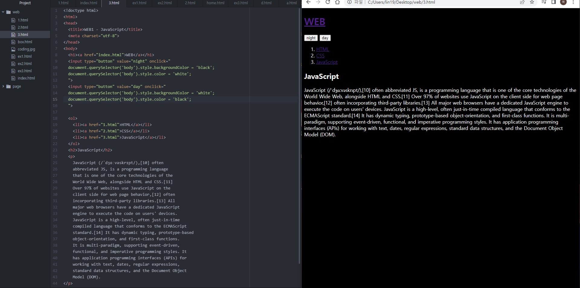 "> : onclick 속성을 이용해서 색상 변경 명령어 사용