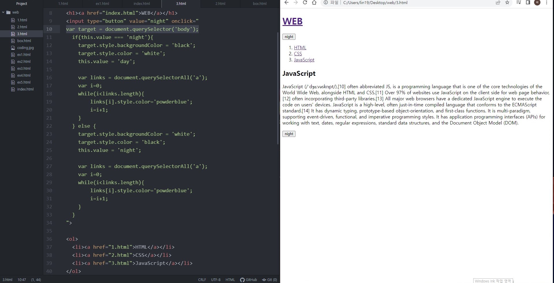 <body>태그의 style 속성을 동적으로 상호작용에 의해 넣음