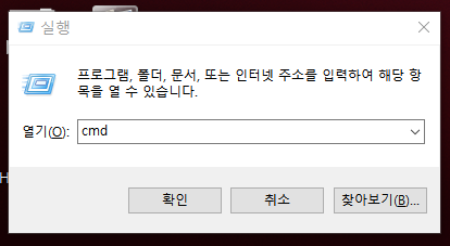 윈도우키 + R키 누르기 : 창이 뜨는데 그 창에 cmd 입력하기(터미널 콘솔)