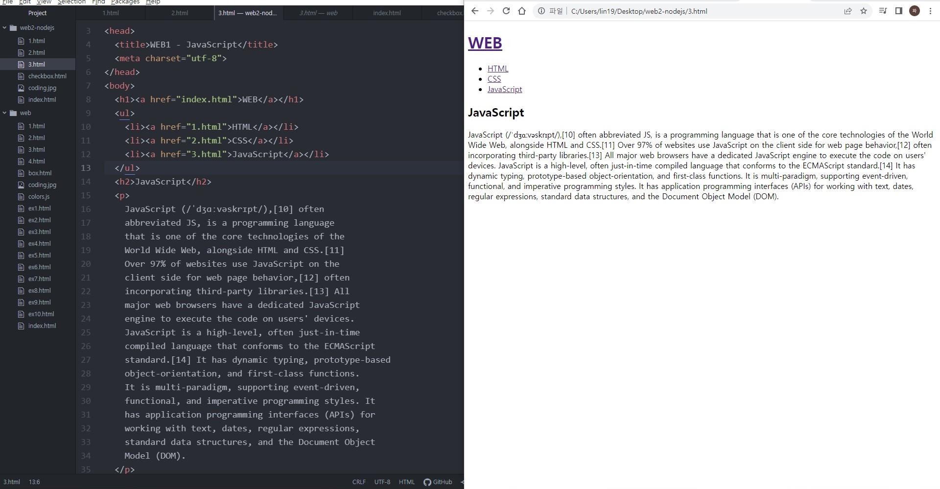 웹브라우저 위에서 돌아가는 웹사이트 또는 웹페이지 또는 웹애플리케이션을 만들기 위해 html이라고 하는 컴퓨터 언어의 문법에 따라서 호출함으로써 웹애플리케이션을 만들게 되는 것이다. nodejs도 마찬가지이다.