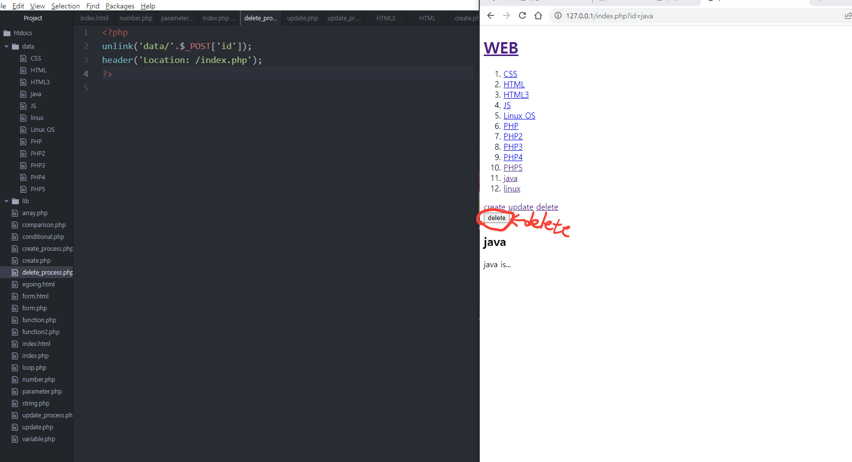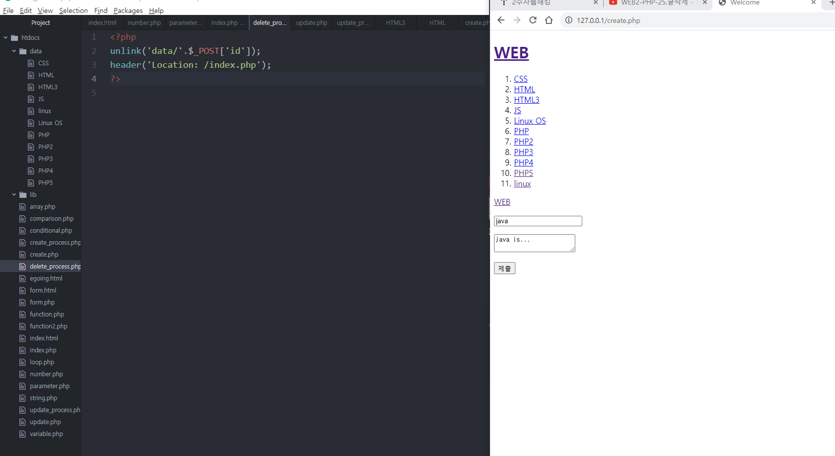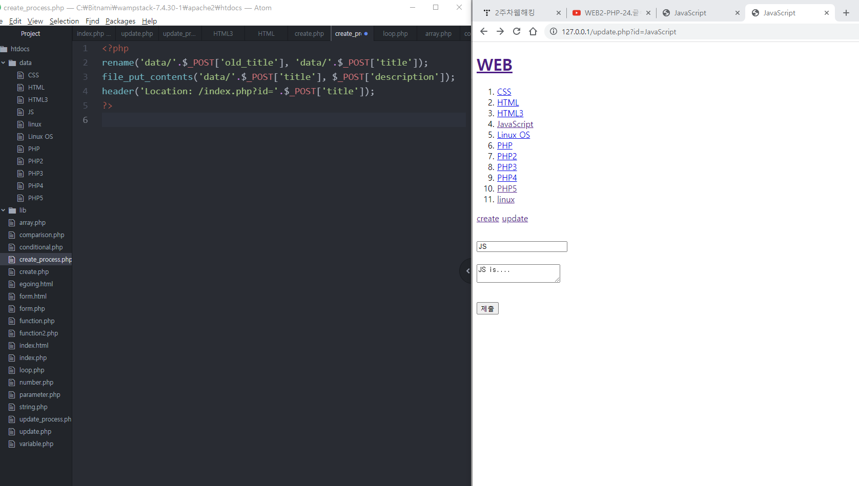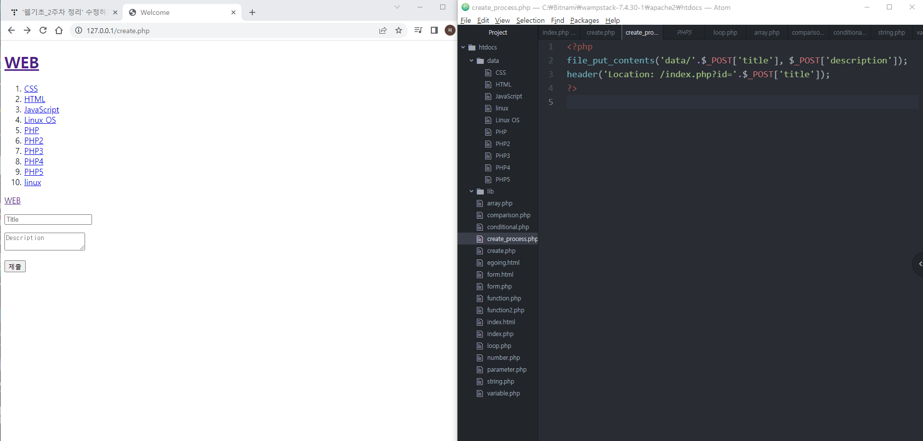전송된 데이터가 post값으로 전송될 수 있도록 create_process.php파일을 만든다